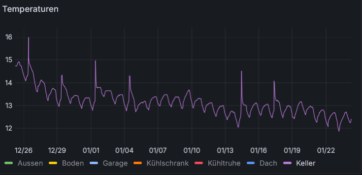Aktuell läuft die Erdwärmeheizung mit 4,7 KW Wärmeabgabe bei 4 °C AT. Wenn man den Verlust von 2 Tagen unbeheizt überschlägig mit einbezieht, werden meine Mitarbeiter wohl sehr richtig mit Ihren Vermutungen liegen.