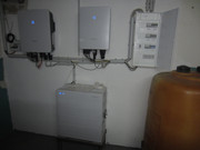 Hallo Ölwechsler; wohin nur mit dem ganzen Altöl? :-)) bei mir bot sich der Heizungsraum an, der um den Öllagerraum vergrößert wurde. Von dort mußte ich auch rund 10 m zum alten Zählerplatz. Der reichte aber nicht mehr und deshalb wurde auf halber Strecke im Flur ein neuer Zählerschrank eingebaut (dort war genügend Platz). Im Heizungskeller sieht es nun so aus: Links in der Ecke kommen die Leitungen vom Dach, unter den Wechselrichtern steht die Batterie und rechts ist die Unterverteilung für Ersatzstrom und Sicherungen. Zum neuen Zählerkasten gehen 1 dicke Leitung (Hauptstromleitung), eine dünnere NYM-Leitung (3.adrig?) sowie 4 Steuerleitungen (1 x Fritzbox, 2 x Steuerbox PV-Portal, 1 x Anzeige im Zählerkasten) ab. Der alte Zählerkasten dient jetzt nur noch als "Unterverteilung". Dort wurde nur der alte Zähler ausgebaut, entsprechend überbrückt und sonst keine Änderungen vorgenommen. Hier der neue Zählerkasten: Im rechten Teil sind nur die beiden Schraubsicherungen "Haus" und "Solar" für PV notwendig, der Rest wurde nachträglich von mir eingebaut um den Stromverbrauch Haus und WP getrennt zu erfassen. Stellt sich natürlich auch die Frage, ob der alte Zählerkasten ausreicht und ob Platz für einen neuen da ist, ggf bei Dir ja evtl. im Heizungskeller. Die Leitungen würde ich nicht in der Deckenisolierung versenken. Sauber mit Leerrohren an der Wand montiert wäre meine Option. Stromleitungen können auch warm werden und das mag die Isolierung wohl kaum. Besprochen wurde mit dem Elektriker, der vom PV-Errichter kam lediglich, wo der neue Zählerkasten zu installieren sei. Der Rest ergab sich dann von alleine. Auch die Bemerkung: So viele Leitungen verlege ich selten für eine PV-Anlage. Soll Dir zeigen, was zumindest bei mir an Leitungen nötig war. Denke auch daran, daß Wechselrichter Wärme abgeben und im Vorratsraum will man die ja nicht unbedingt haben. Gruß Heinz PS: stör Dich nicht am Heizöltank. Der dient dazu, bei Wartungsarbeiten das Wasser aus dem Puffer aufzunehmen damit nicht jedes mal komplett neues Wasser (Sauerstoff) ins System kommt.