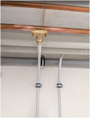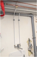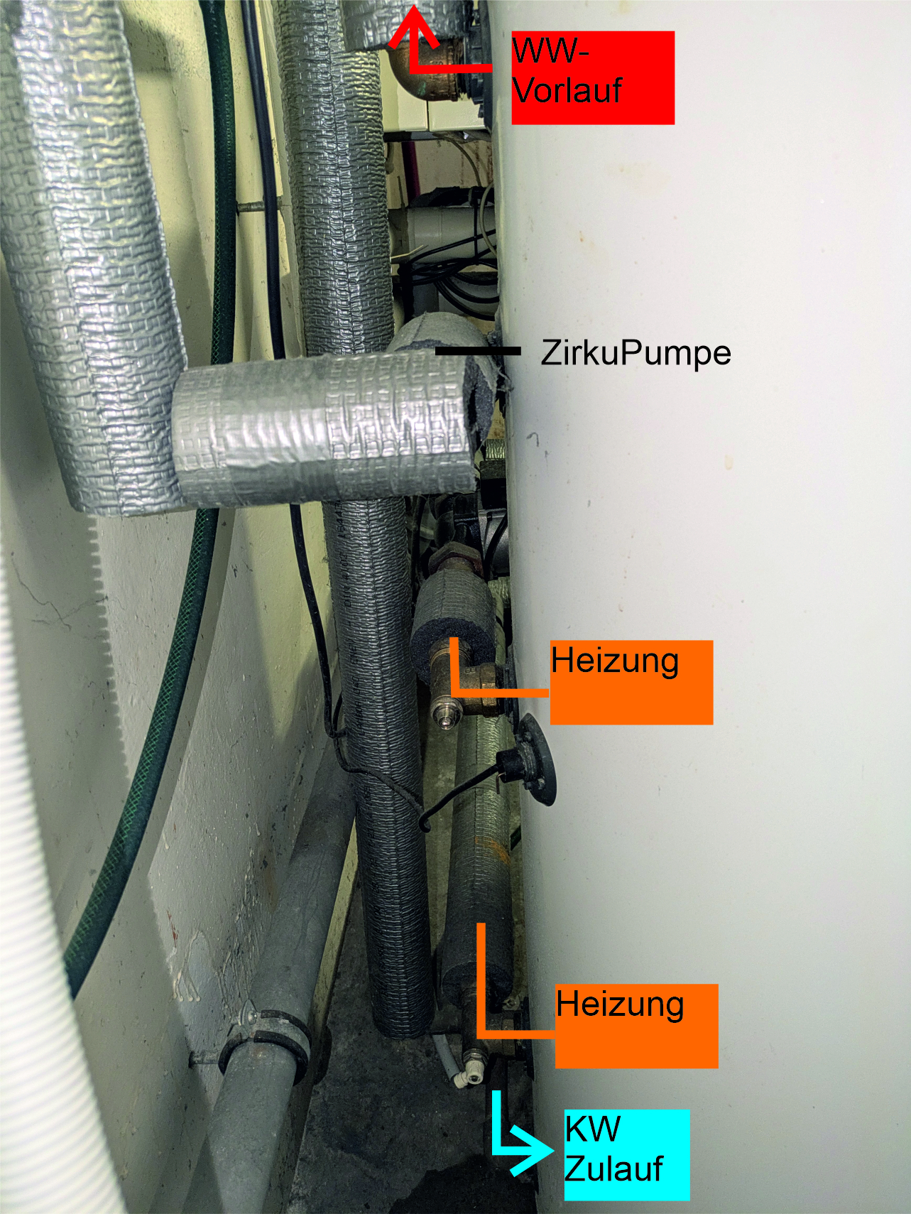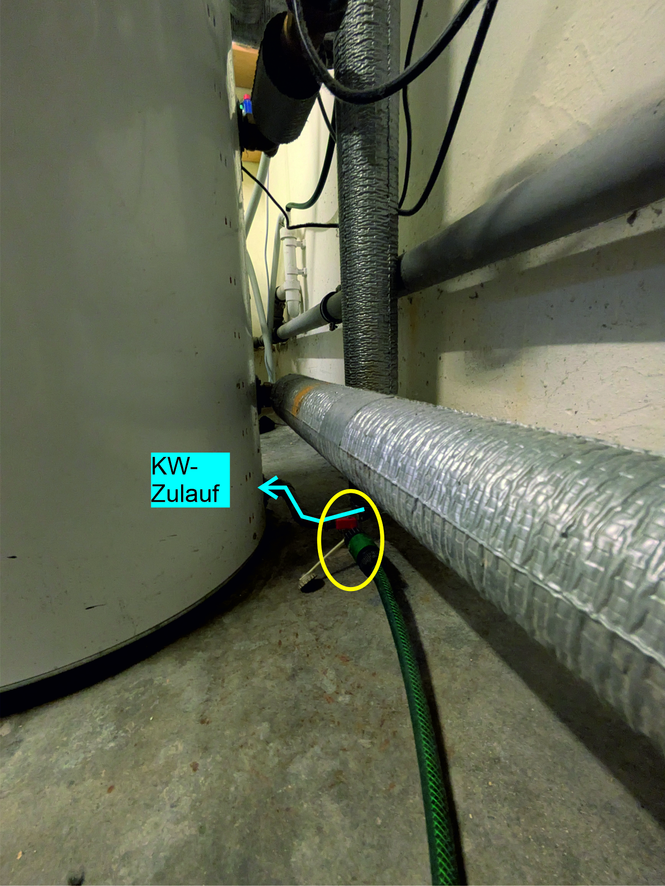 Hallo zusammen, ich habe im Keller ein Waschbecken installiert. KW-Zulauf ist bereits dran. Nun wollte ich mich an den WW-Zulauf machen. Vom WW-Speicher geht das WW am oberen Ausgang des WW-Speichers raus ins Haus. Im Keller ist der WW-Abzweig zur Küche. Genau an dem Strang möchte ich das Kupferrohr trennen und um ein T-Stück ergänzen, an dem ich dann den WW Anschluss der Kellerarmatur befestige. Nun die Frage, die WW-Leitung ist ja voll Wasser. Dieses würde ich gerne vorher so gut es geht entleeren damit das nicht beim Trennen alles rausfliest. Vorgehen wie folgt: 1. Haupthahn zu 2. Heizung aus (bzw. nur die Zirku- Pumpe des WW-Speichers) 3. Warmwasser an einer Armatur im EG öffnen und geöffnet lassen damit der Druck erst mal raus ist So, nun würde ich gerne noch das Restwasser aus dem WW-Kreislauf entfernen. Ich sehe nur keine Möglichkeit dazu. Am WW-Speicher auf der Rückseite sind die Anschlüsse wie auf dem Bild zu sehen. Dort ganz unten (Bild 2, gelb markiert) ist auch das Absperrventil, welches ich zur Befüllung der Heizung nutze, zu sehen. Kann man diesen einfach aufdrehen und das Wasser aus dem WW-Speicher läuft dort ab? Oder ist im WW-Speicher eine Sperre, so dass das Wasser nur in die eine Richtung fließt (also in den Speicher)? Ich weiß, dass der Schlauch zum Befüllen der Heizung nicht dauerhaft verbunden sein darf. Das war nur auf dem Foto so, da ich minimal was nachgefüllt hatte bevor ich das Foto gemacht hab. Ich danke euch schon mal! BILD 1 SEITENANSICHT DAVORSTEHEND VON LINKS BLICKEND BILD 2 SEITENANSICHT DAVORSTEHEND VON RECHTS BLICKEND |