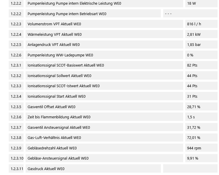 Zitat von DMS20  Auffällig ist, dass das BWG eigentlich bis ca. 14% heruntermodulieren können müsste, es aber nur bis ca. 20% tut; ist die richtige Gasart und das Gerät an sich diesbezüglich korrekt eingestellt?[...] Guten Morgen, moduliert hat sie bisher nur ab 18.01%. Weiter runter ging sie noch nie. Die Takterei ist an sich schon besser geworden.Die Heizkörper sind lauwarm und die Fußbodenerwärmung ist bei den Aussentemperaturen mit 12 Grad und zur Relation der Heizkurve auch ok. Den Abgleich würde ich natürlich machen lassen. Nur habe ich aufgrund der letzen Erfahrungen leider kein großes Vertrauen mehr in diese Firma. Denn Eure Ratschläge brachten bisher mehr Erfolg als die experiment hatten. Ob die richtige Gasart und das Gerät an sich diesbezüglich korrekt eingestellt wurde, weis ich natürlich nicht. Ich mache nachher neue Fotos und freue mich dann über Euer Feedback. LG Sandra