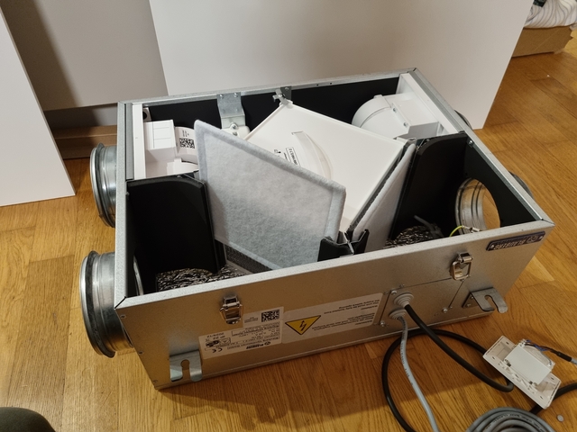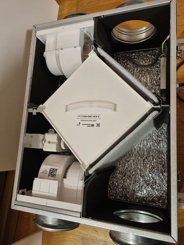 Die integrierten Rückstauklappen konnte ich mit etwas Gefühl heraus nehmen (soweit es geht zuklappen und dann von hinten leicht mit einem Finger durchbiegen). Das ist notwendig, da ich das Gerät ja vertikal verbauen möchte (Achtung: nur bei Enthalpie-Version möglich!).