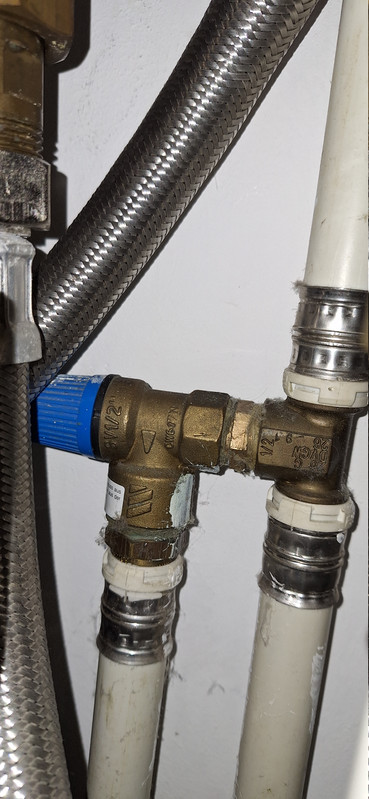 H[img]allo, nach 15 Jahren wurde jetzt das Sicherheitsventil an meiner Wasserinstallation im Haus undicht (habe schon mehrfach gespült, ohne Erfolg). Jetzt würde ich es gerne tauschen, aber sehe ich das richtig, das alte Ventil raus geflext und das Verbundrohr und die Fittinge in dem Bereich erneuert werden müßen? Soweit ich weiß, sind Fittinge zum Verbundrohr nicht drehbar. Abstand zur Wand ca 4-5 cm und es wurden keine Fittinge mit Überwurfmutter verwendet Ich hoffe das Bild ist aussagekräftig. Grüße Oli |