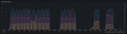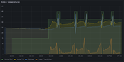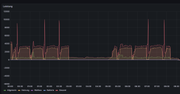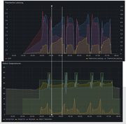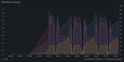 So, ich bin jetzt einen Schritt weiter. Bzw. ich hoffe es *grins* Ich hab mir in Grafana nochmal ein neues Dashboard gebaut und einfach mal ein paar Parameter, die ich mir von der Kiste per Diagnose hole, mit eingetragen um zu sehen, welcher Parameter "aus der Reihe tanzt" wenn das Problem auftaucht. Zuerst hatte ich die Drehzahl des Verdichters in Verdacht, aber die bleibt genau so konstant wie die Drehzahl des Lüfters. Dann bin ich auf den Parameter " Temperatur Ablassleitung" gestoßen, von dem ich ehrlich gesagt zwar nicht weiß, wie der sich zu verhalten hat, aber er zeigt ein auffälliges Muster. In einem "normalen" Lauf steigt diese Temperatur nicht über 50°C und liegt meistens so zwischen 35°C und 45°C. In einem Lauf mit dem Verbrauchspeak steigt diese Temperatur in Korrelation mit dem Inverterstrom an und erreicht im Peak 65°C. Das ist hier im Diagramm die lilafarbene Linie: @Karl, was genau ist diese "Temperatur Ablassleitung", das hat doch mit dem Außengerät zu tun, richtig? Kann da irgendein Ventil außen defekt sein?