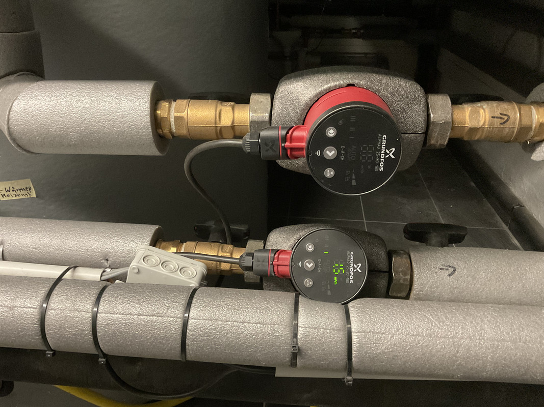 So, prima. Langsam mit dem Updaten auf 1.88! Nachdem die Pumpen nun zumindest schon mal ordungsgemäß ein- und ausschalten und die Temperaturverläufe erwartungsgemäß sind, kommen wir zur Betriebsart Heizung. Deine Heiztakte sind viel zu kurz für 2,0K Hysterese! TRLext im MFS steigt viel zu schnell. Die Volumenstromverhältnisse von Lade- und Entladekreis passen nicht zusammen, sprich die Leistungseinstellungen der ZUP zur HUP passen nicht. Mach mal Bilder von den zwei Pumpen, insbesondere die HUP. Was sind das für welche? Auf welcher Einstellung laufen die derzeit? Bietet die Hausseite genug hydraulische Möglichkeiten für einen äquivalent hohen Volumenstrom, welche die WP in den MFS schiebt, oder fährt die WP mit ihrem Wärmeeintrag in den MFS gegen einen Prellbock?