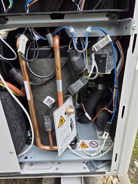 Hier ein Bild unserer in 04/2025 wegen unvollständiger Durchströmung des Verdampfers ausgetauschten neuen Arotherm 55/6.