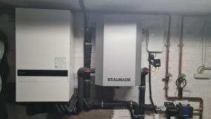 Gibt die WP den Durchfluß an? Was verbirgt sich in dem Stalmark? Sieht man doch auf den Bildern. Die Grundfos ist für dir Heizkörper bzw für den Kreis der Heizkörper zuständig. Die Fußbodenheizung hat einen eigenen Kreis. Dort ist halt die andere Pumpe verbaut. Ich gehe davon aus, dass die Pumpen den Durchfluss angegeben, oder ? Kann ich leider nicht genau sagen. Stalmark ist, glaube ich, ein Puffer. Kann ich aber nicht 100% sagen.