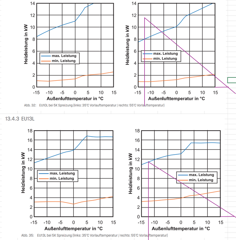 Nun starte ich einen zweiten Versuch und möchte mich besser auf das Erstgespräch vorbereiten. Dafür wäre ein durchdachtes Schema hilfreich. Der Heizungsbauer bietet Wärmepumpen von Lambda an und hat mir in der ersten Korrespondenz die EU13 vorgeschlagen, nachdem ich ihm meine Verbrauchswerte (ermittelt durch den Wärmemengenzähler) übermittelt habe: