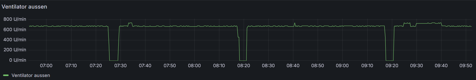 Servus, ich habe seit Oktober eine Daikin Altherma 3M 14 im Einsatz und logge über Home Assistant auch fleißig alle Daten mit. Aktuell bin ich dabei das Thema Geräuschoptimierung anzugehen. Ich bekomme zu Thema Lüfter 2 Messwerte: ventilator_1_stufe: Werte zwischen 0 und 8 ventilator_2_stufe: Immer 0 da wohl nicht benutzt bei dem Modell Was mich nun wundert, sind die Werte starre Drehzahlen oder sowas wie Kennlinien oder Maximalwerte die zulässig sind? Warum ich Frage:Meine Ventilator Stufe ist immer Stufe 8 (außer natürlich beim Abtauen oder Stillstand, dann 0) auch wenn ich den Oktober anschaue. Ich bin mir aber ziemlich sicher das die Drehzahl variiert, denn so wie diese gerade bei -6 Grad rödelt (Stufe 8) hat er garantiert im Oktober bei mildem Wetter (auch Stufe 8) nicht gearbeitet. Was ich zumindest erzwingen konnte das er in den Flüsterbetrieben diesen Wert runtersetzt, bei Stufe "Leise" auf 6 und bei "Leiser" auf Stufe 5. Den Modus "Am leisesten" habe ich jetzt bei der Witterung nicht probiert. Deswegen meine Fragen: Kann mir dazu jemand nähere Infos geben und gibt es eventuell sogar die Drehzahl irgendwie in Reinform als 1/min, konnte das Signal bei mir auf die Schnelle nicht finden, DANKE