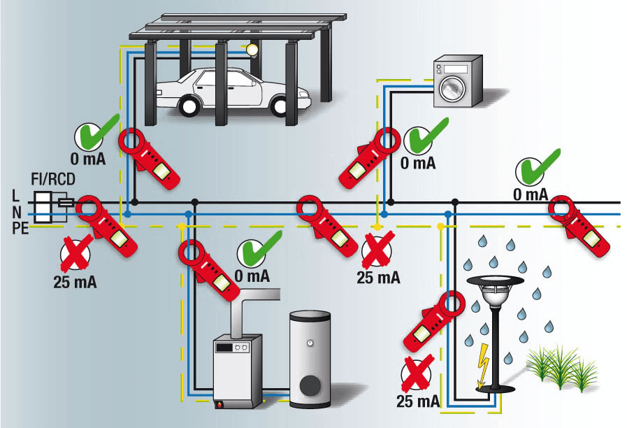 Hier sollte doch Ihr Elektrofachbetrieb mit einer Leckstrommessung die gesamte Haus-Elektroverteilung mit Überprüfen denn es könnte schon sein, dass irgendwo in der Installation oder Geräte ein fast konstanter Leckstrom am Fließen ist, wie hier auf dem ersten Erklärung- Foto das dann mit den zusammen mit deren nicht vorhandenen Ableitströmen kann dann ein RCD (auch FI-Schalter genannt schon mal an seine vorgegebenen Auslösegrenzen bringen.