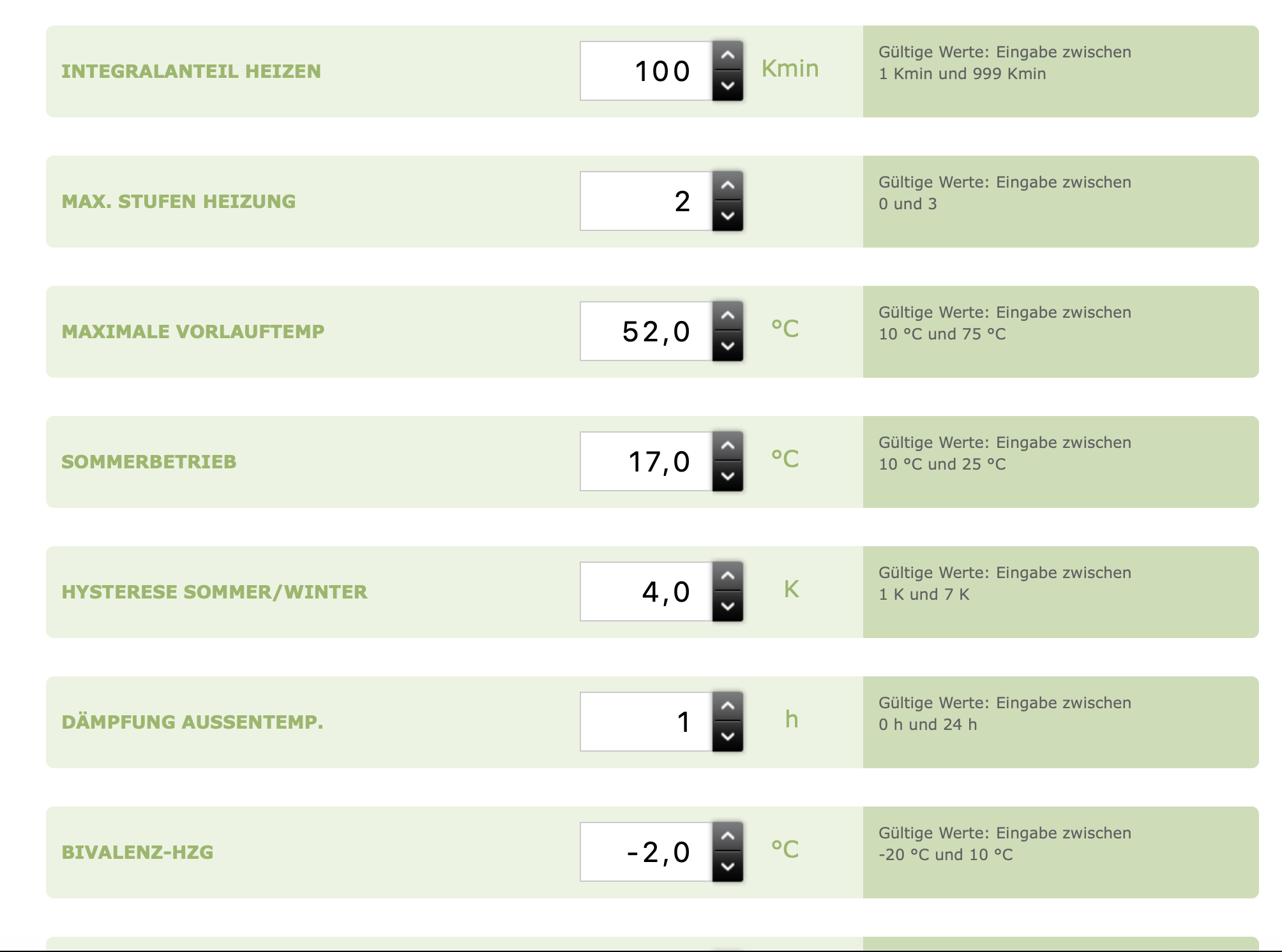 Moin Moin, Die Bivalenz-HZ hatte ich auf 2° gestellt, damit die Bude auch ohne Notbetrieb geheizt wird. Ich hatte die Zuteilung auf 3 gestellt. Mein Gedanke war, dass die WP zusätzliche Energie zum Abtauen benötigt und man mit zusätzlicher Energie aus einem Teufelskreis rauskommt… Ist aber nicht so. Der Integralanteil ist auf Standard eingestellt. Das kann man sich im Nachgang sicherlich anschauen. Es sollte aber keine Fehlerquelle sein. Zudem kann ich nicht sagen, was der Wert aussagt :) Daher die Standard Einstellung. Das Thema Volumenstrom werde ich einmal genauer betrachten. Alle Stellantriebe sind geöffnet (Raumthermostatte)… Ich werde dieses in den Verteilern noch mal kontrollieren. Gestern hatte ich im Verteiler im OG geschaut. Das sah alles offen aus. Nehme ich aber mit für heute. Der Abgleich sollte bei der Installation erfolgt sein. Vor knapp 2 Jahren hatten wir auch noch keine Probleme. Die Pumpe steht auf 60% (WW&HZ) und der Druck liegt bei 1,85 bar lt. Druckanzeige und 1,7 bar lt. ISG. Aus meiner Sicht gibt es ein Problem mit dem Abtauen des Verdampfers, da ich nach meinem Nachteinsatz mit Abtauen per Hand (spülen) und der wieder Inbetriebnahme, einen schön langen Takt hatte (über 90 Minuten). Ich weiß nicht, ob in der Zeit auch genug wärme Produziert wurde… Aber der lange Takt war für mich erstmal in Ordnung. Auch wenn ich eine lange Phase den Notbetrieb eingeschaltet habe, taktet er das erste mal deutlich länger und dann geht es in immer kürzere Takte über. Das Abtauen des LLWT kann ich noch nicht ganz greifen. Ist das nicht der Kreuzlüfter? Oder ist das der kleine Wärmetauscher dahinter? Was macht der und wie taut der ab? Ich bin der Meinung, dass das ein 3Wegeventil gewechselt wurde. Der Kollege war auf Fehlersuche und hat Irgendwann dieses Ventil gefunden. DIE WP lief danach besser, aber es war nicht im Winter und wir brauchten keine Wärme. Daher nun schwer zu sagen… Vor den Kanälen hängt nichts. Sie sind nicht vereist oder ähnliches. Der Zuluftkanal ist zudem geschützt (Carport). Da war auch kein Schnee oder ähnliches. Auf der Fahrt zur Firma versuche ich mich mal wieder beim Werkskundendienst. Vielen Dank für deinen Input. Ich schaue mir das heute Abend mal an. Danke und Gruß Nils