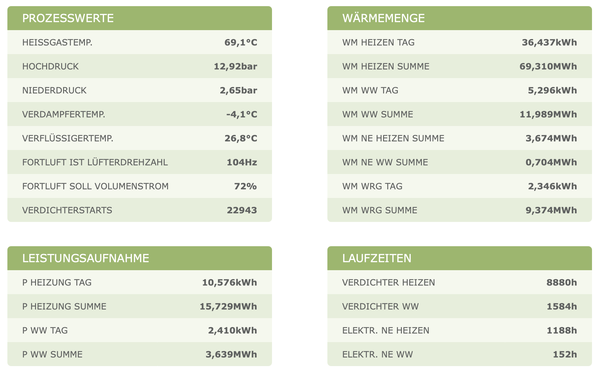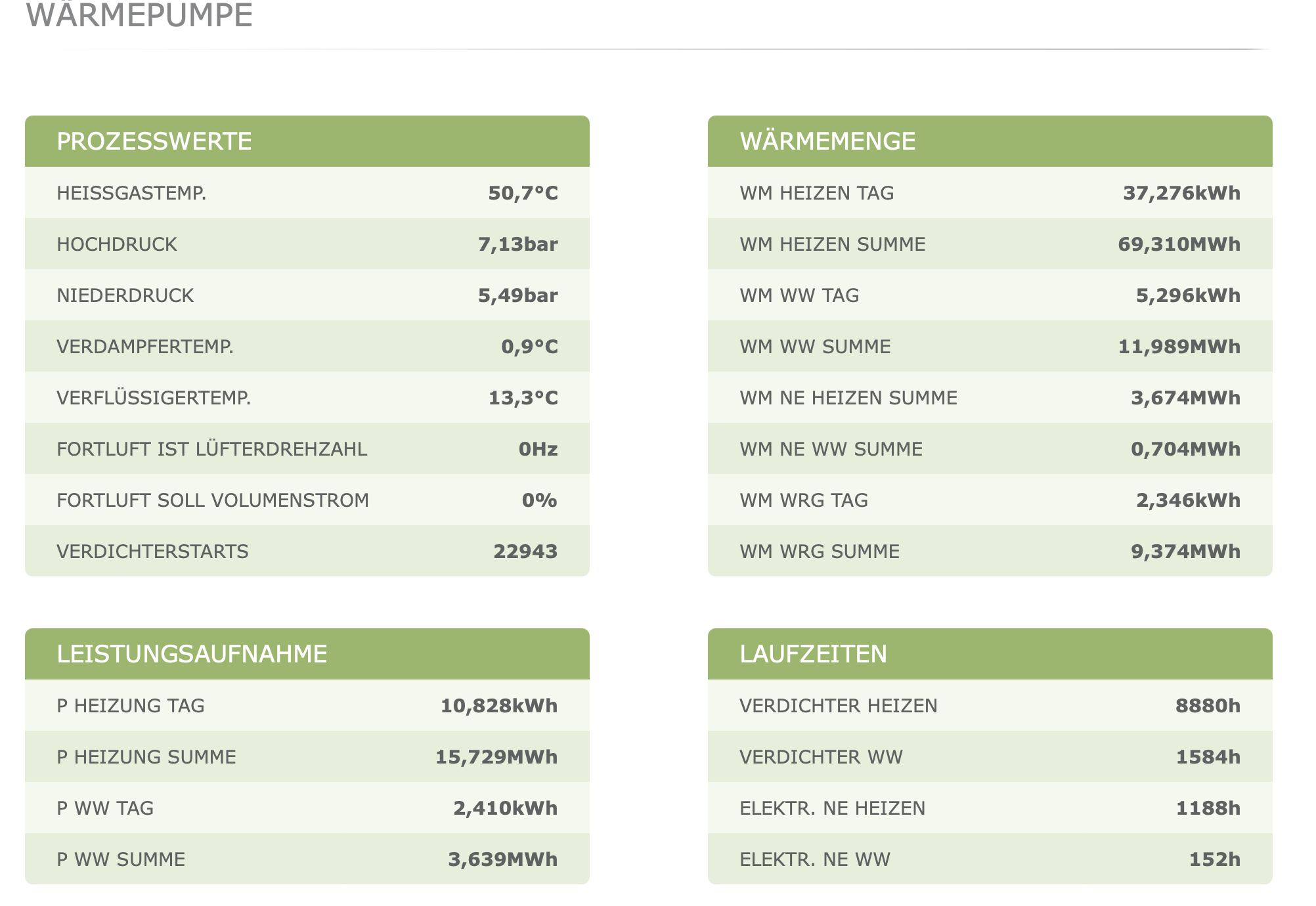 Oh, jetzt wirds spannend. Luft-Luft WT ist der Wärmetauscher der Lüftung, nicht der WP. Ist der ggf vereist? Du meinst den G1 Filter hinten bei der Zuluft? Der Differenzdruck Verdampfer steht bei mir unter Info Wärmepumpe. (ich hab allerdings eine LWZ 8)