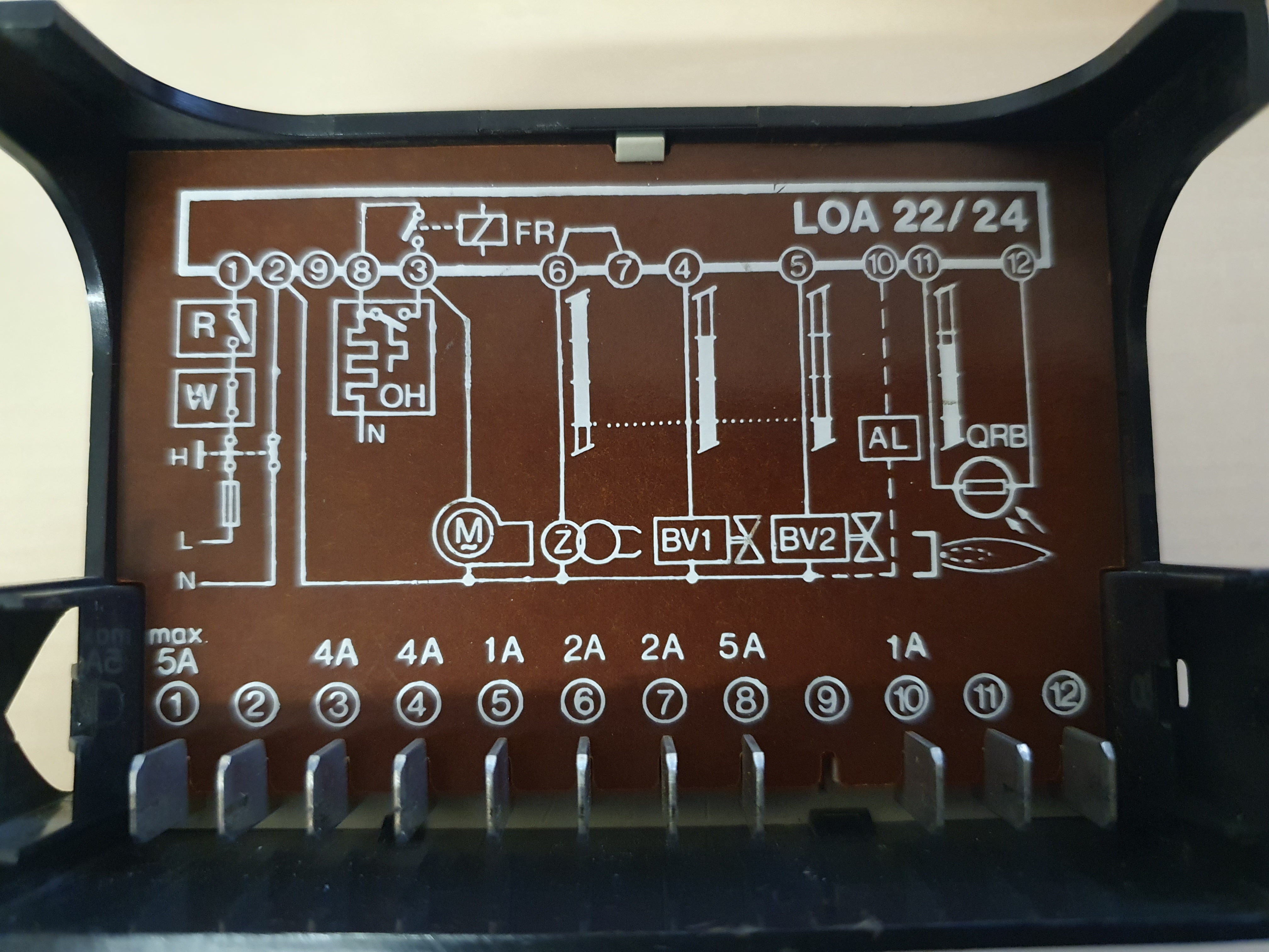 Hallo, ich habe hier in einem unbewohnten Haus eine Klöckner Ölheizung Systron 27, welche seit gestern nicht mehr zündet. Die Anlage hatte dieses Problem schon mal vor ein paar Jahren. Damals war nur ein Anschluß am Feuerungsautomaten locker, weshalb ich heute vorsichtig die Drähte bei aufgesetztem Oberteil des Feuerungsautomaten bewegt habe. Daraufhin hatte ich zwei lose Drähte in der Hand. Nun bin ich mir nicht sicher, wo die hingehören. Ich hoffe, jemand kann mir hier einen Rat geben. Der Feuerungsautmat ist ein LOA24.171B27 von Landis&Gyr. An der Anschlußleiste ist akutell an den Klemmstellen 5, 7 und 9 kein Draht angeklemmt. #9 ist auch nicht mit einem Steckkontakt versehen, scheidet also aus. Da mir eine 50:50 Chance zu heikel ist, suche ich Eure Hilfe. Auf einem Bild sind rechts die beiden losen Drähte (braun und schwarz) zu erkennen. Die Drähte führen zu der weiß bedruckten Leitung im zweiten Bild, welche zum Ölvorwärmer führt. Ablauf im fehlerhaften Zustand: Reset am Feuerungsautomaten drücken, Gebläse läuft an, man hört im Feuerungsautomaten ein Relais schalten -> Anlage geht wieder auf Störung. Vielen Dank! KlemmleisteLeitung |